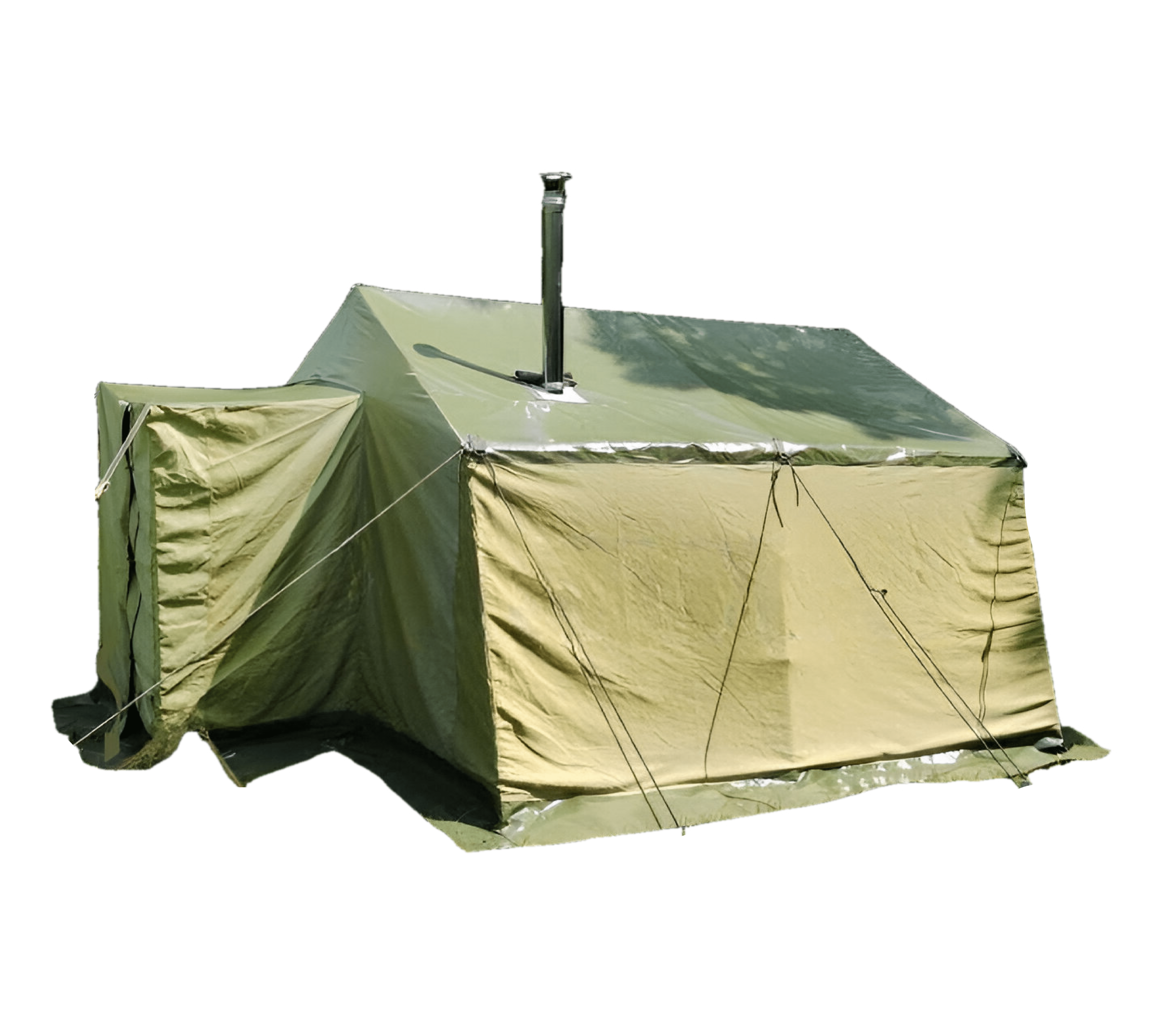 - Отопление: в крыше палатки предусмотрено технологическое отверстие с клапаном для вывода печной трубы диаметром 115 мм.